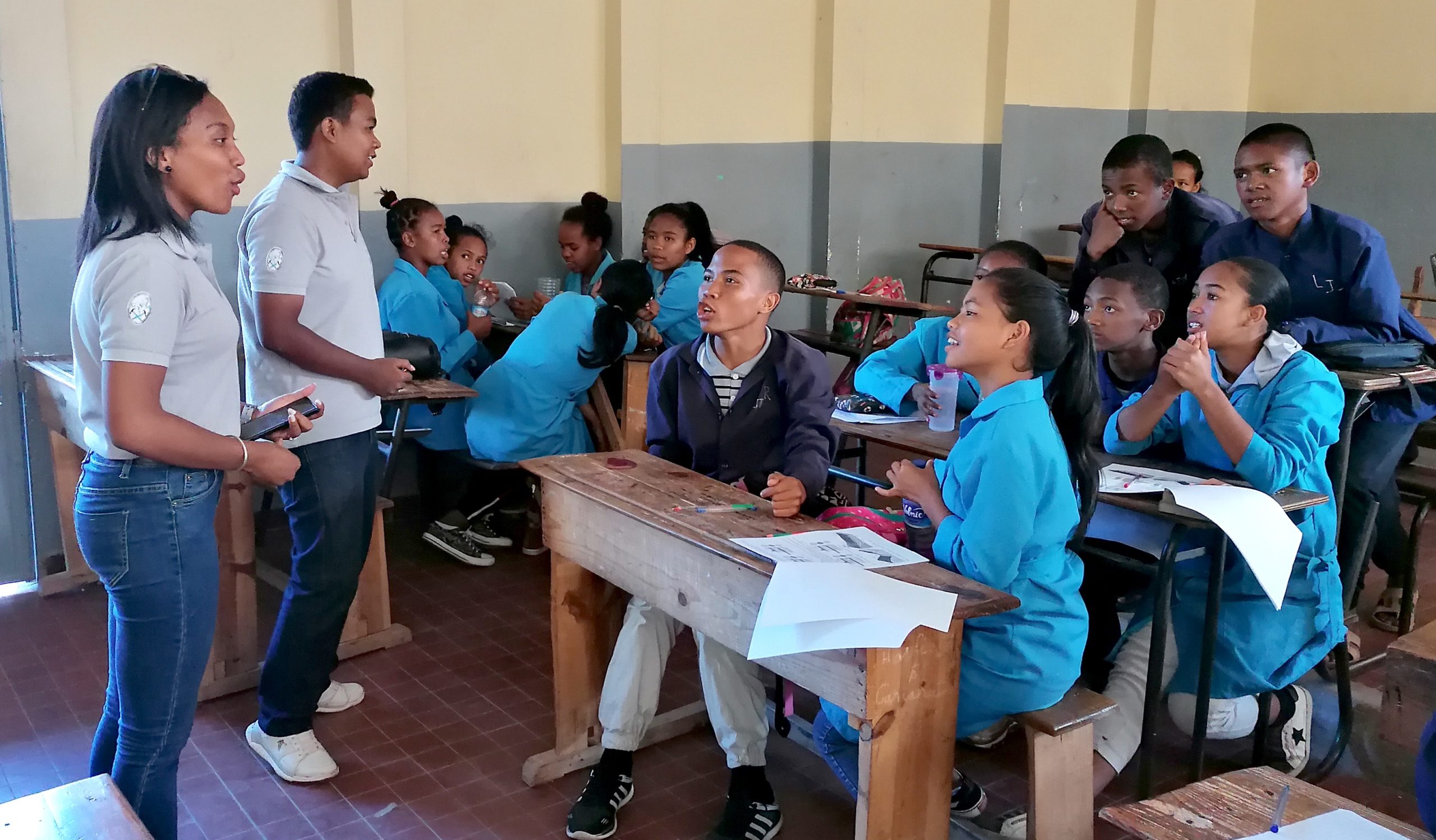 Team Environnement Minier niarahana tamin’i Robson sy Mialy nandritra ny Outreach sy ireo karazam-pampiharana ny fampianarana nomena.
