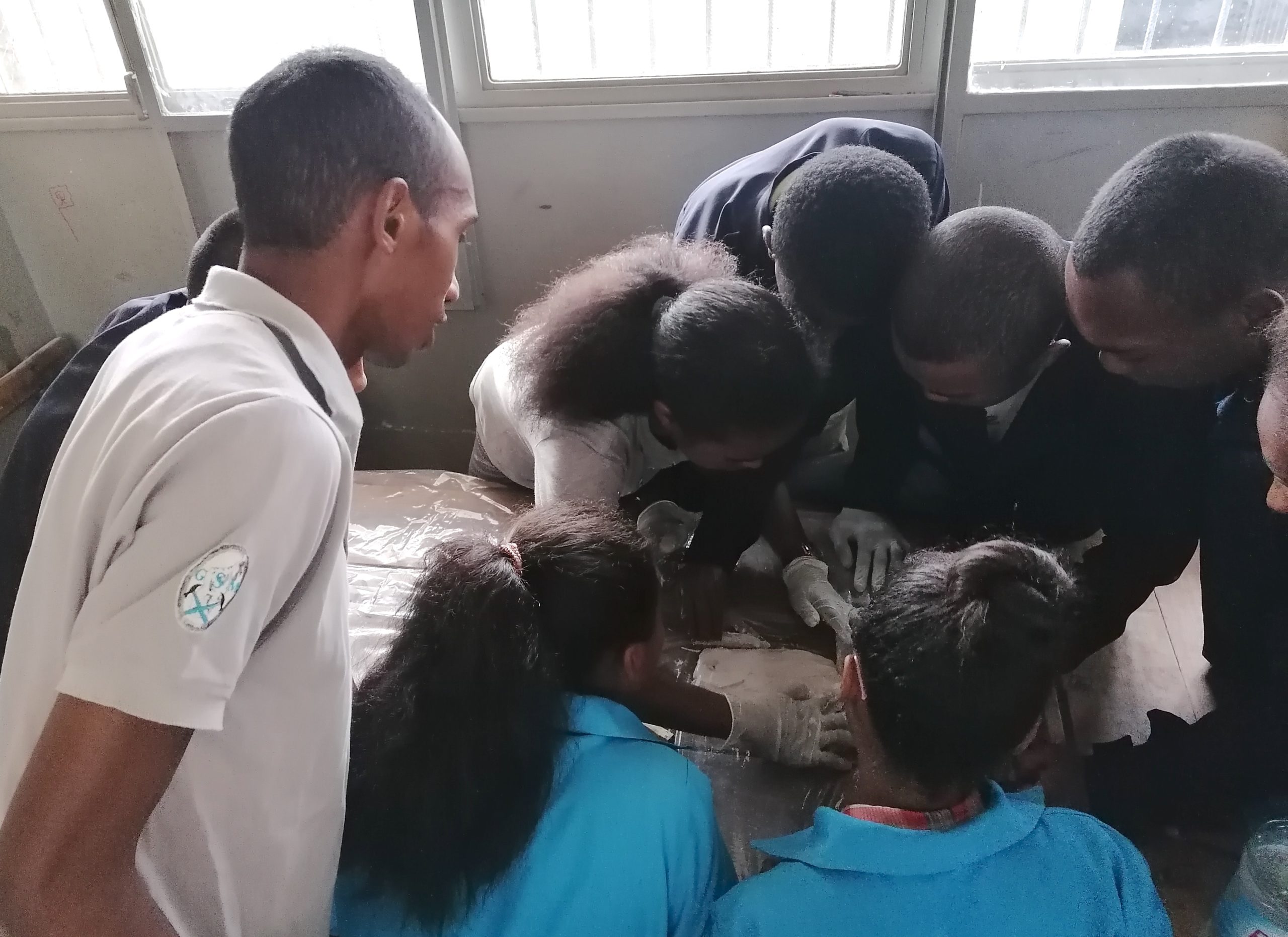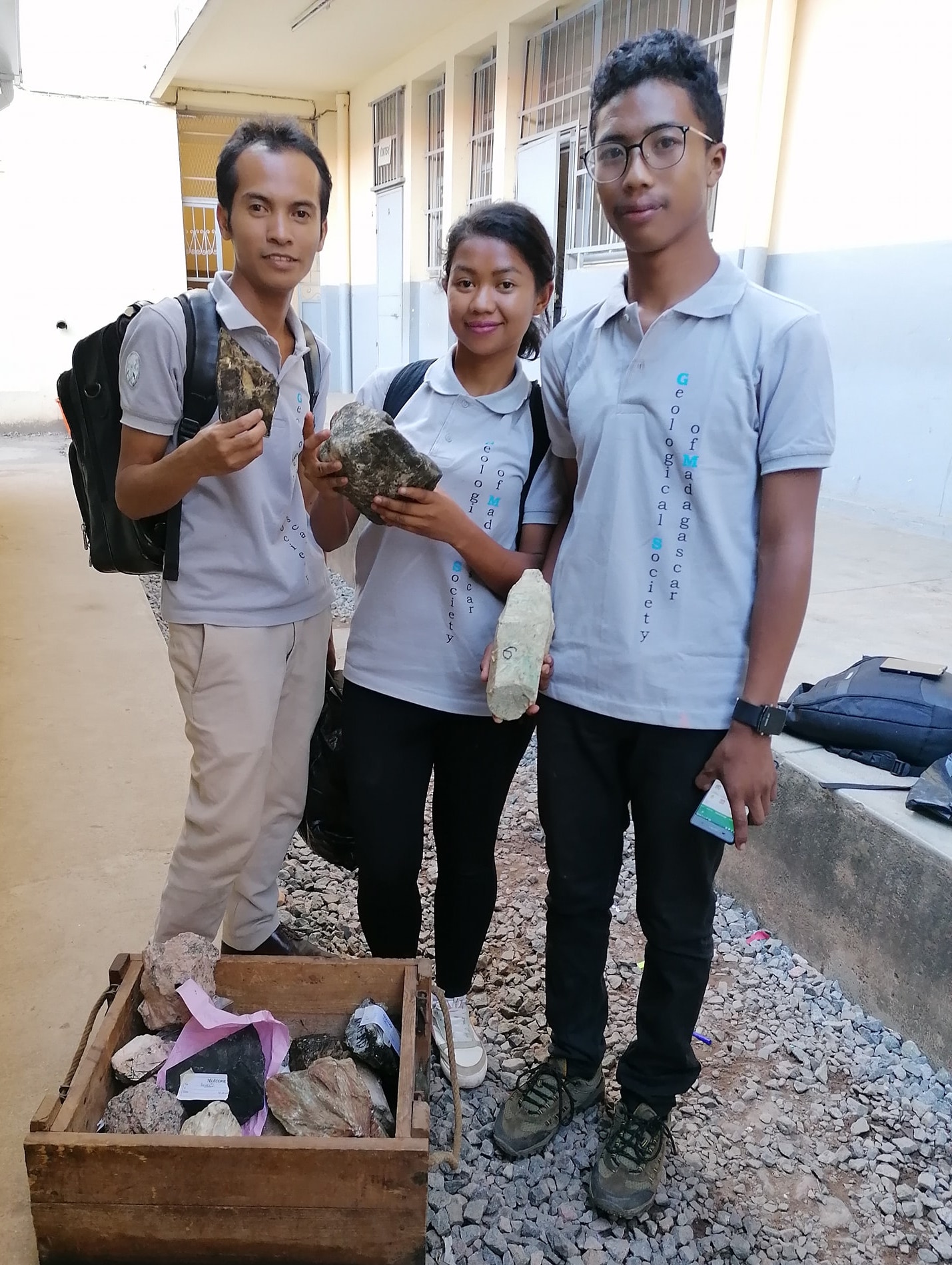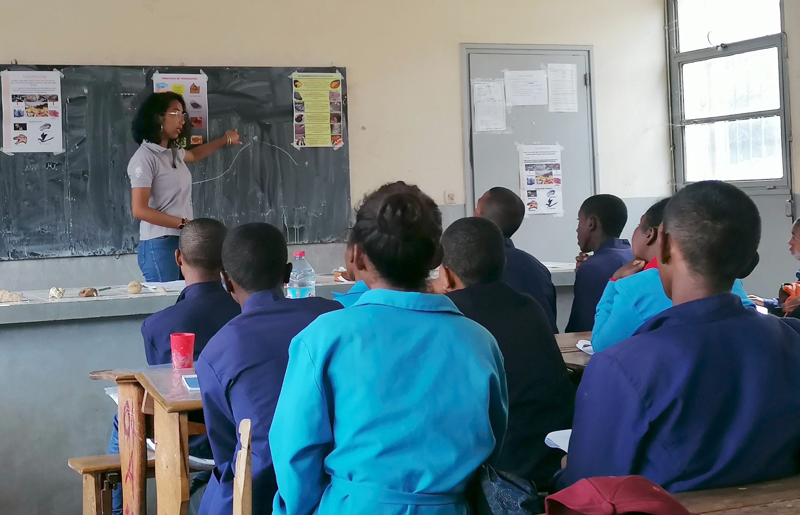 Team Paléontologie niarahana tamin’i Antsa sy Avotra nandritra ny Outreach sy ireo karazam-pampiharana ny fampianarana nomena.