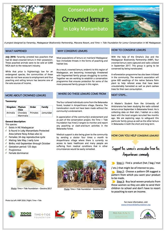 The Miavana-Time + Tide Foundation has been working with lemur conservation and in environmental projects on and around the Nosy Ankao archipelago. This year, they celebrated the World Lemur Festival in the area.