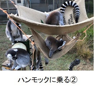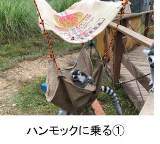 After giving a lecture on lemurs and enrichment, they made entertainment equipment for lemurs. This time, they made a hammock with jute bags and binding wire. They set them in the enclosure and watched them playing with them.